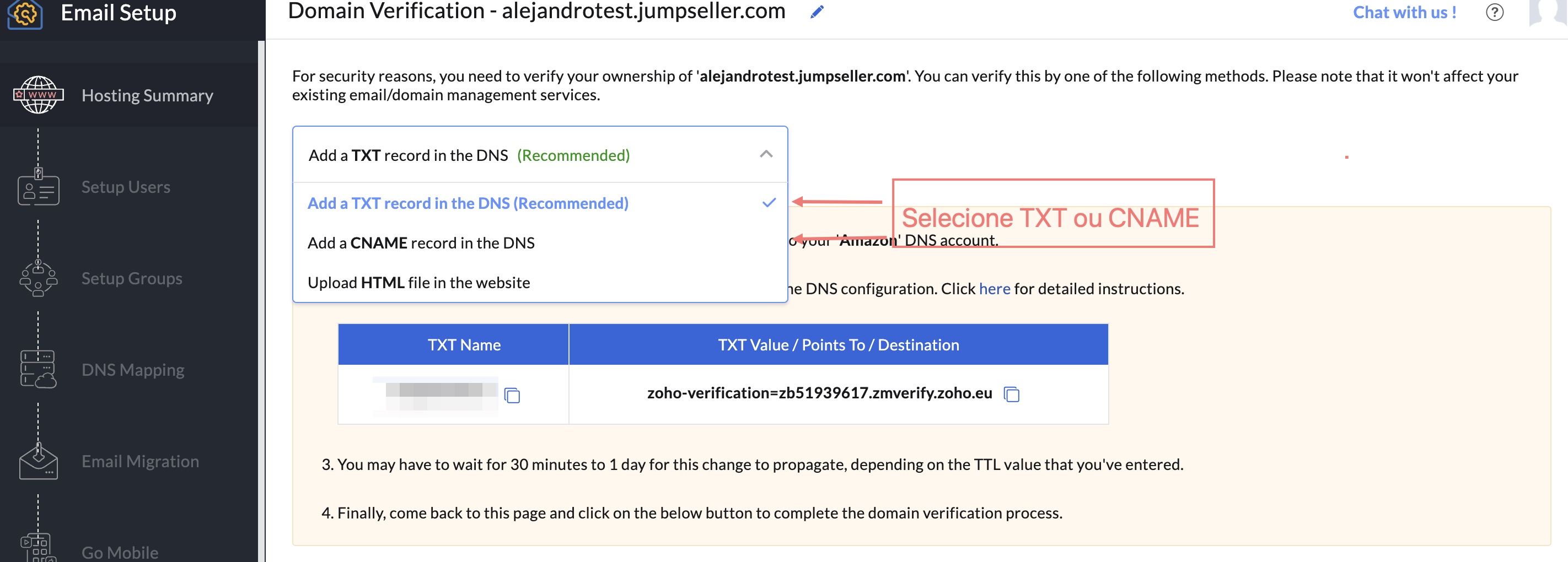 A Zoho quer certificar-se de que é o proprietário do domínio antes de o adicionar ao seu sistema. Para fazer esta verificação, a Zoho irá disponibilizar uma variedade de métodos.